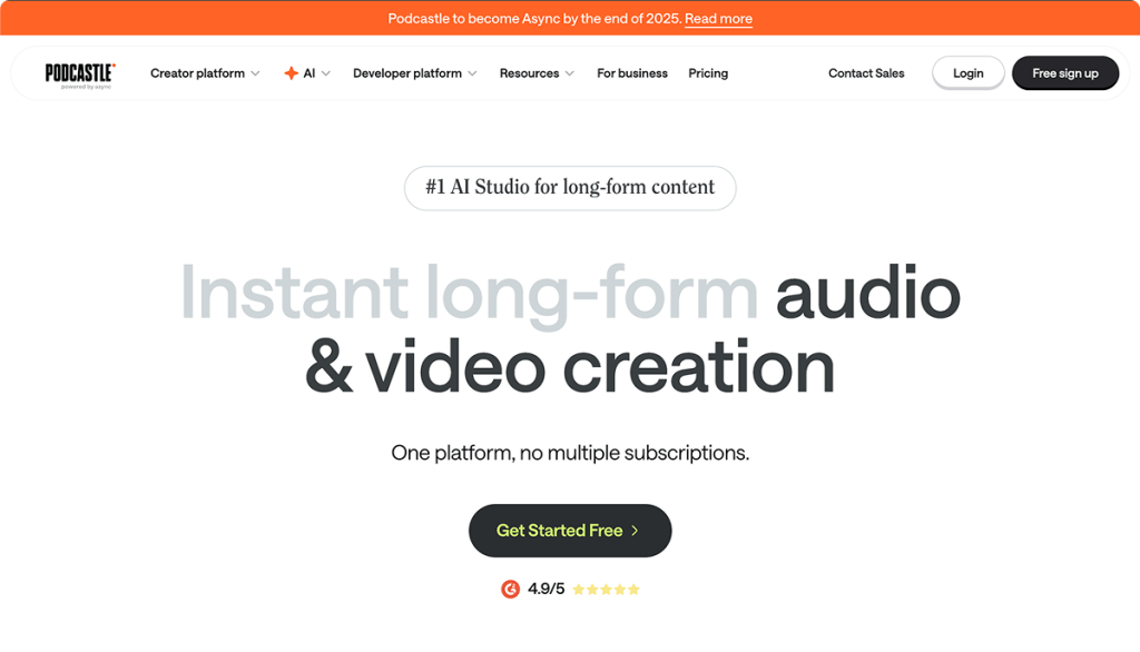 Podcastle by Async is an AI-powered, all-in-one content creation platform that makes it easy and fun to record, edit, enhance, and publish professional-quality audio and video right from your laptop β combining a user-friendly interface with powerful tools that help modern storytellers turn raw ideas into polished, studio-level productions without technical challenges.