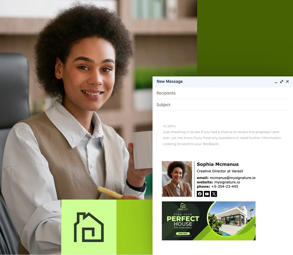 Make your emails more engaging with MySignature banners. Choose from hundreds of templates, save the ones you like, and easily add them to your signature.